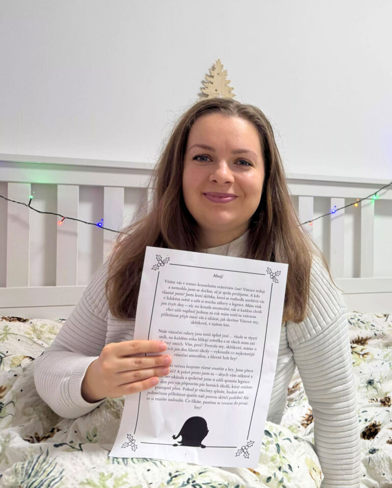Tento rok mezi vás zavítá jedna z nich – veselá skřítka, která má pro děti připravené vánoční hry, pohádky i malé výzvy. Vypráví o svém kouzelné vesnici, ukazuje hry ze svého světa a za jejich plnění dětem postupně odhaluje svou podobu.